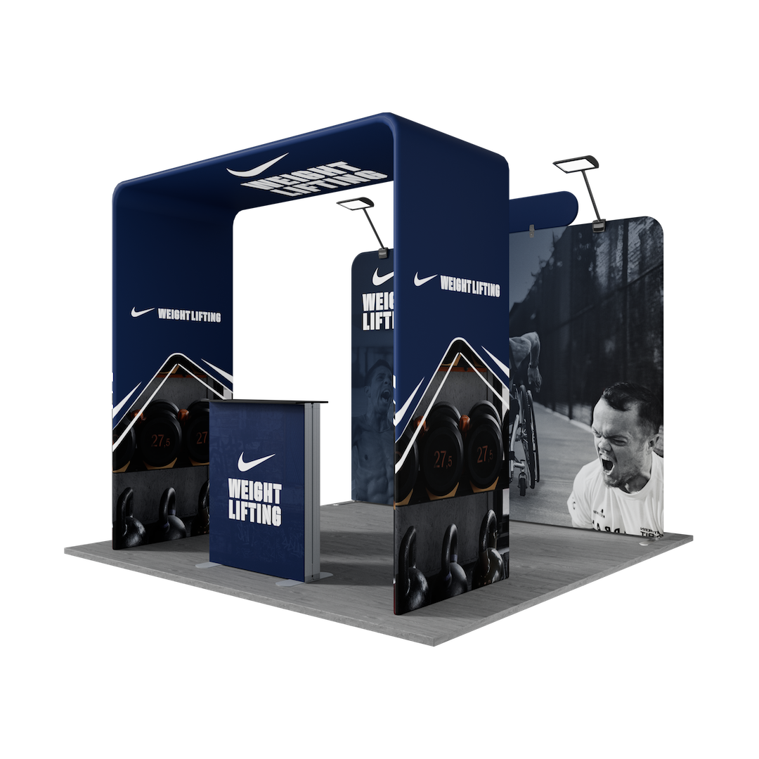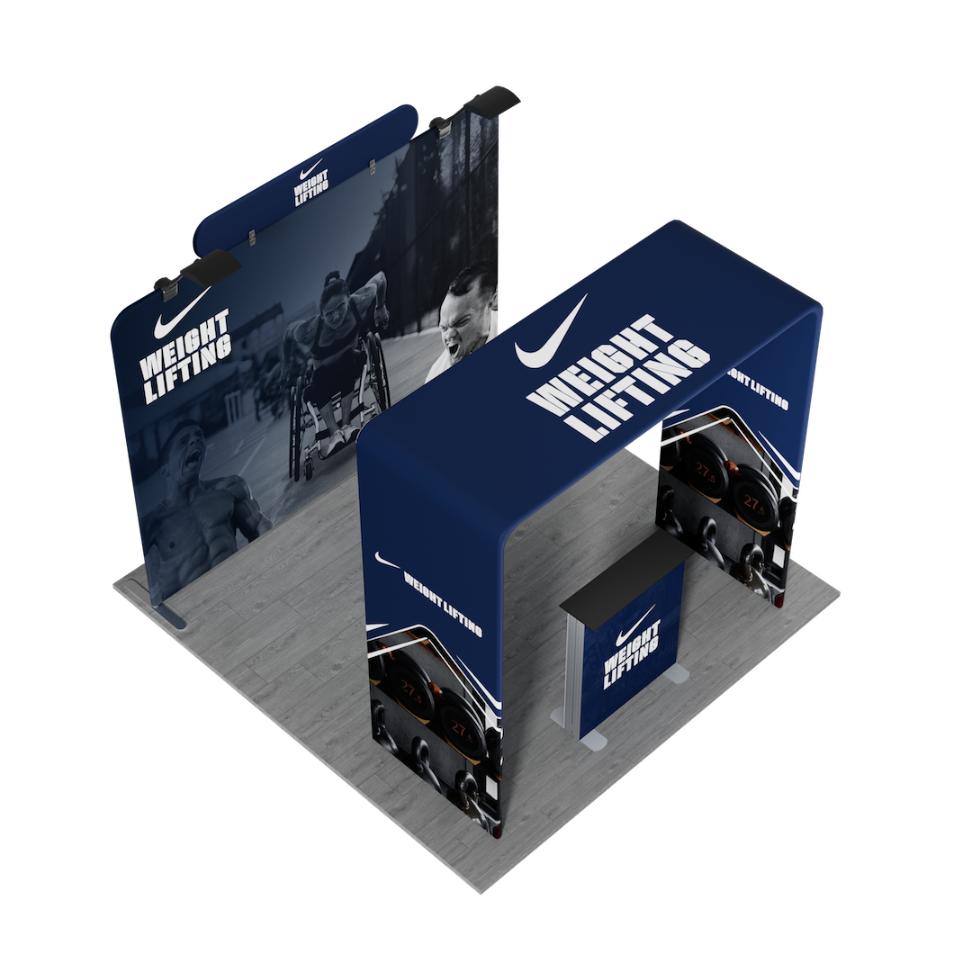 - Increased Visibility: LED lighting and an SEG lightbox counter highlight your branding and help your booth stand out from surrounding vendors.