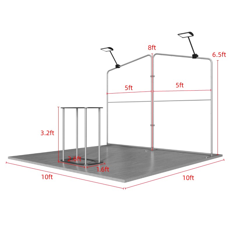 - Modern, Versatile Setup: Two slanted display stands and a square counter for a polished, adaptable booth.