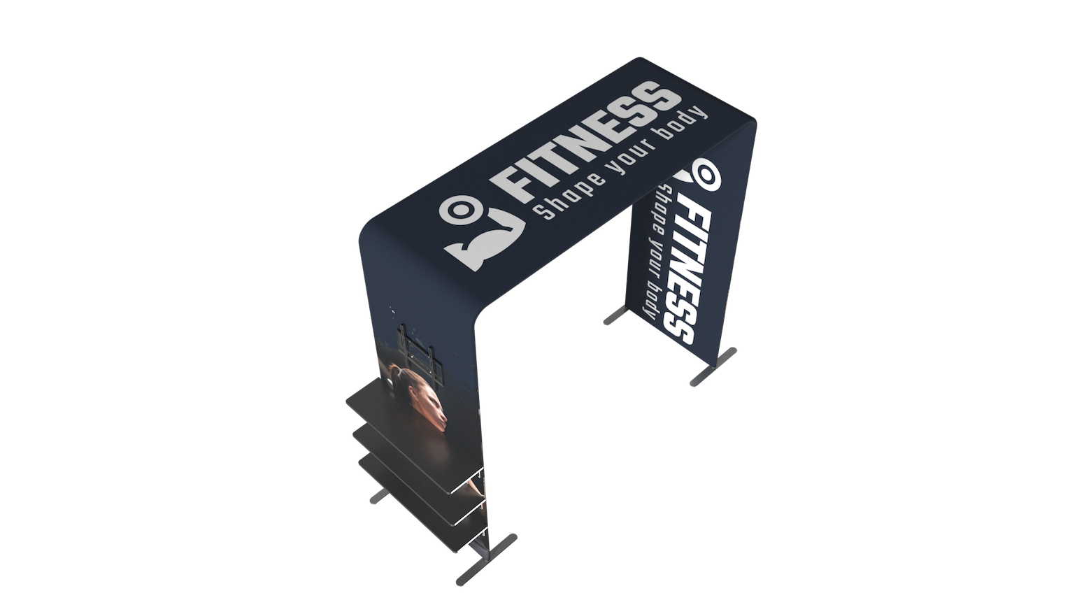 - Integrated Display Shelves: Three shelves for product display, signage, or promo materials