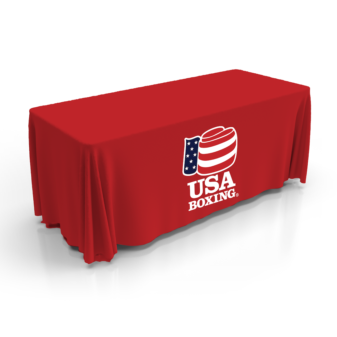 - Our table throw is used for trade shows, exhibitions, and any type of presentation. Our table throws are dye sublimated and are 100% washable. This table cover is made from 7 oz. polyester material that drapes over 4 sides of a 4′,6′, or 8′ display table. The table cover is sewn with rounded corners and hang approximately 2″ above the floor.